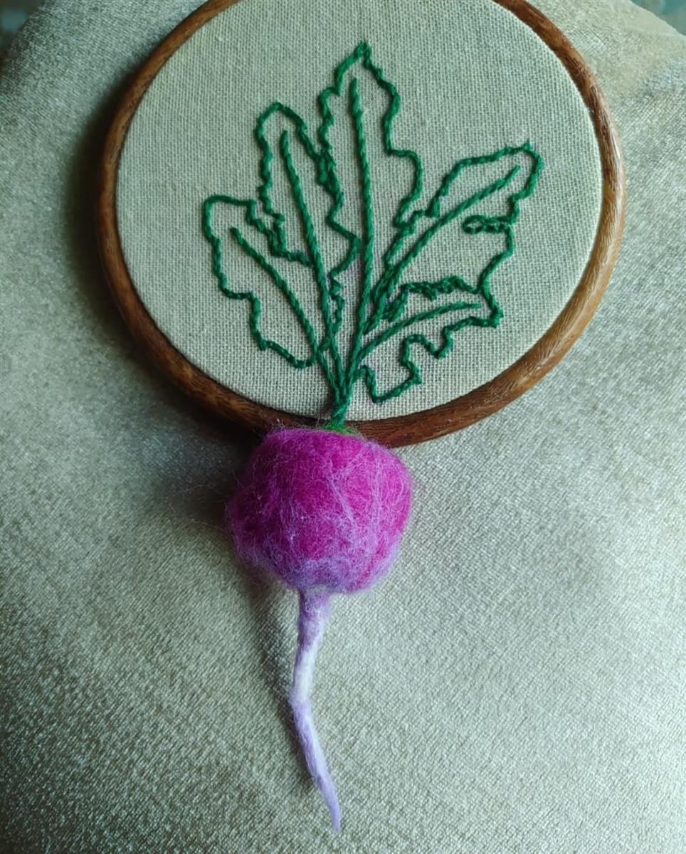 Most desired 3D embroidery; felted veggies hanging out from hoop. Available in embroidery frames size 3, 4, 5 and 5.5 inches. Pre ordered items are delivered within 15 days of receiving orders. International customers may custom order this item on our <a href="https://www.etsy.com/shop/TheCuteCottage2025"><u>Etsy Shop</u></a>