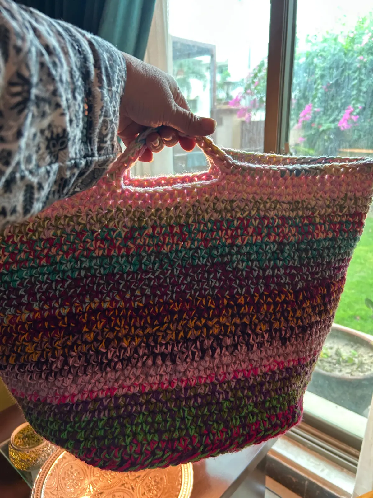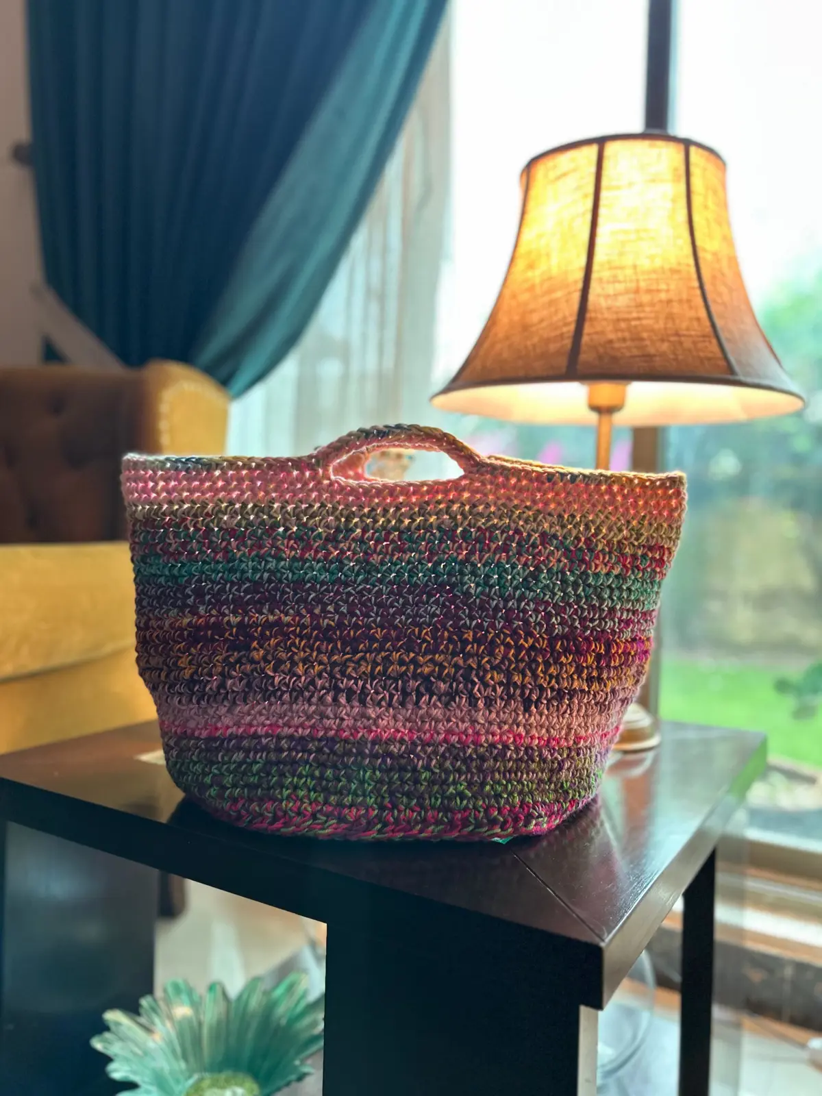 ✨ Handmade crochet storage basket – stylish, spacious, and perfect for organizing your home in a colorful way! πŸ§ΆπŸ’– Size Bottom : 14” Height : 11” Width: 20”