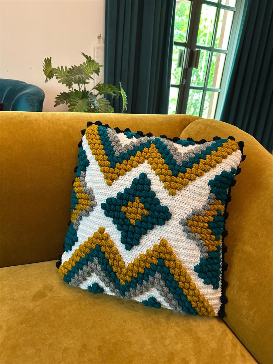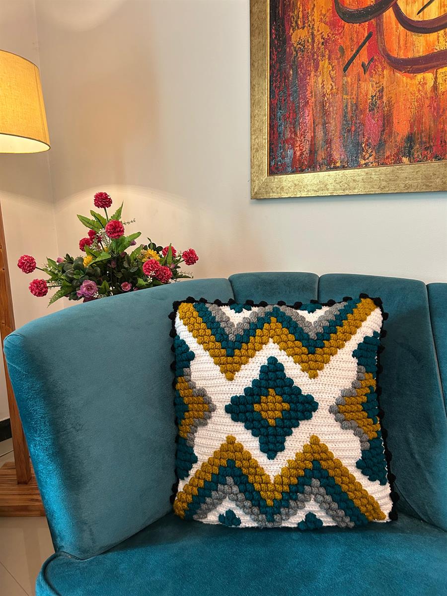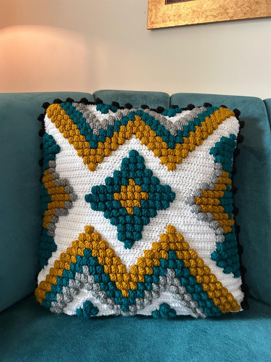 Handcrafted 3D Bobble Stitch Cushion Pillow Cover with Local Standard Yarns. The product consist of cushion cover only. Lining and Filling is not included.