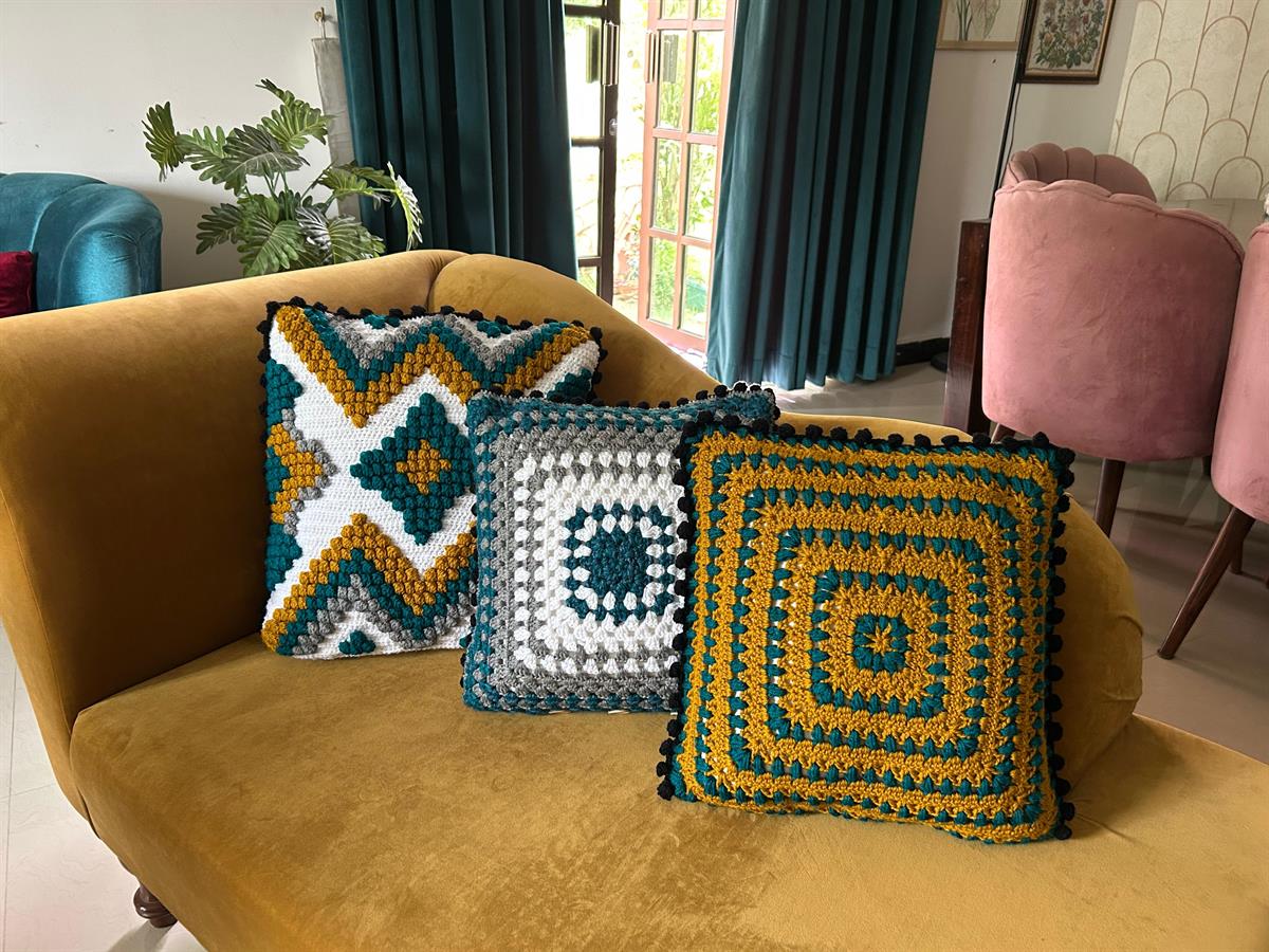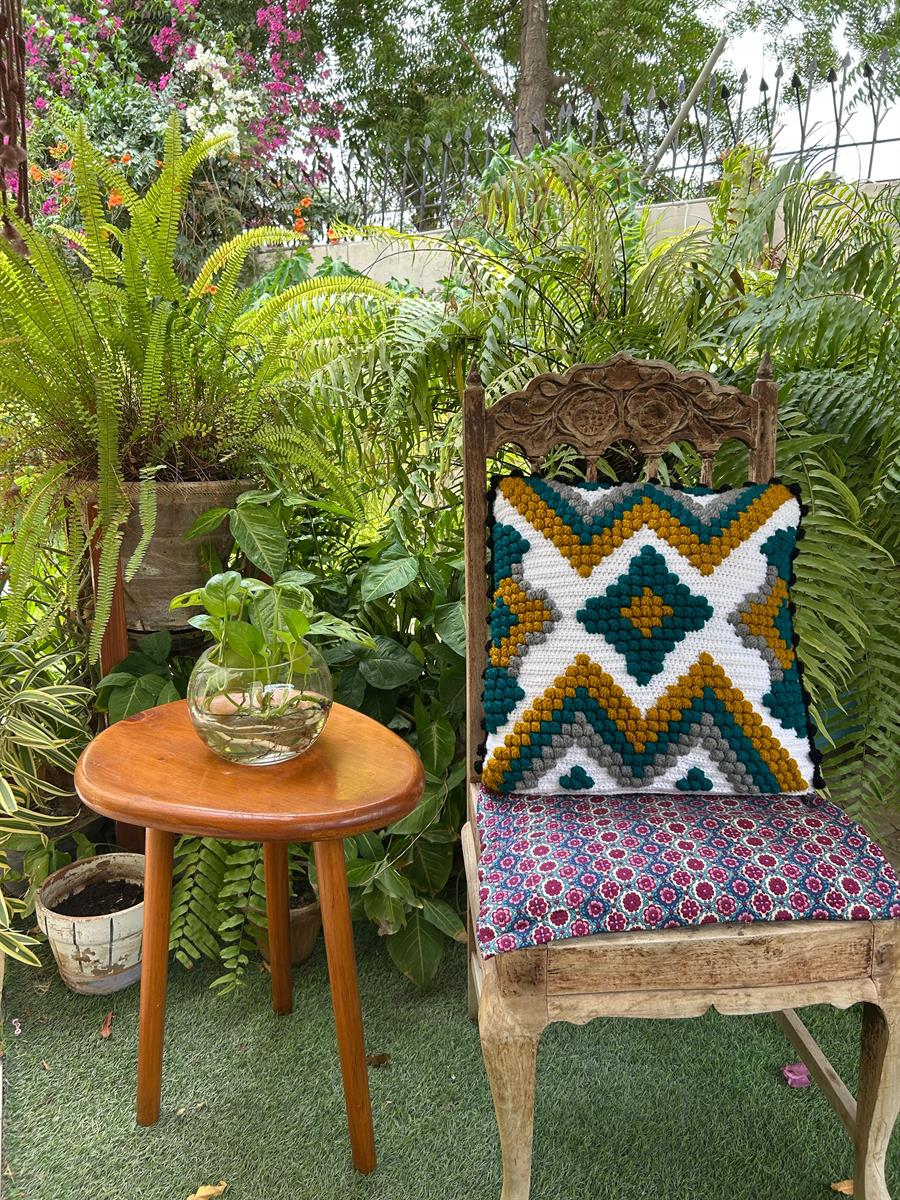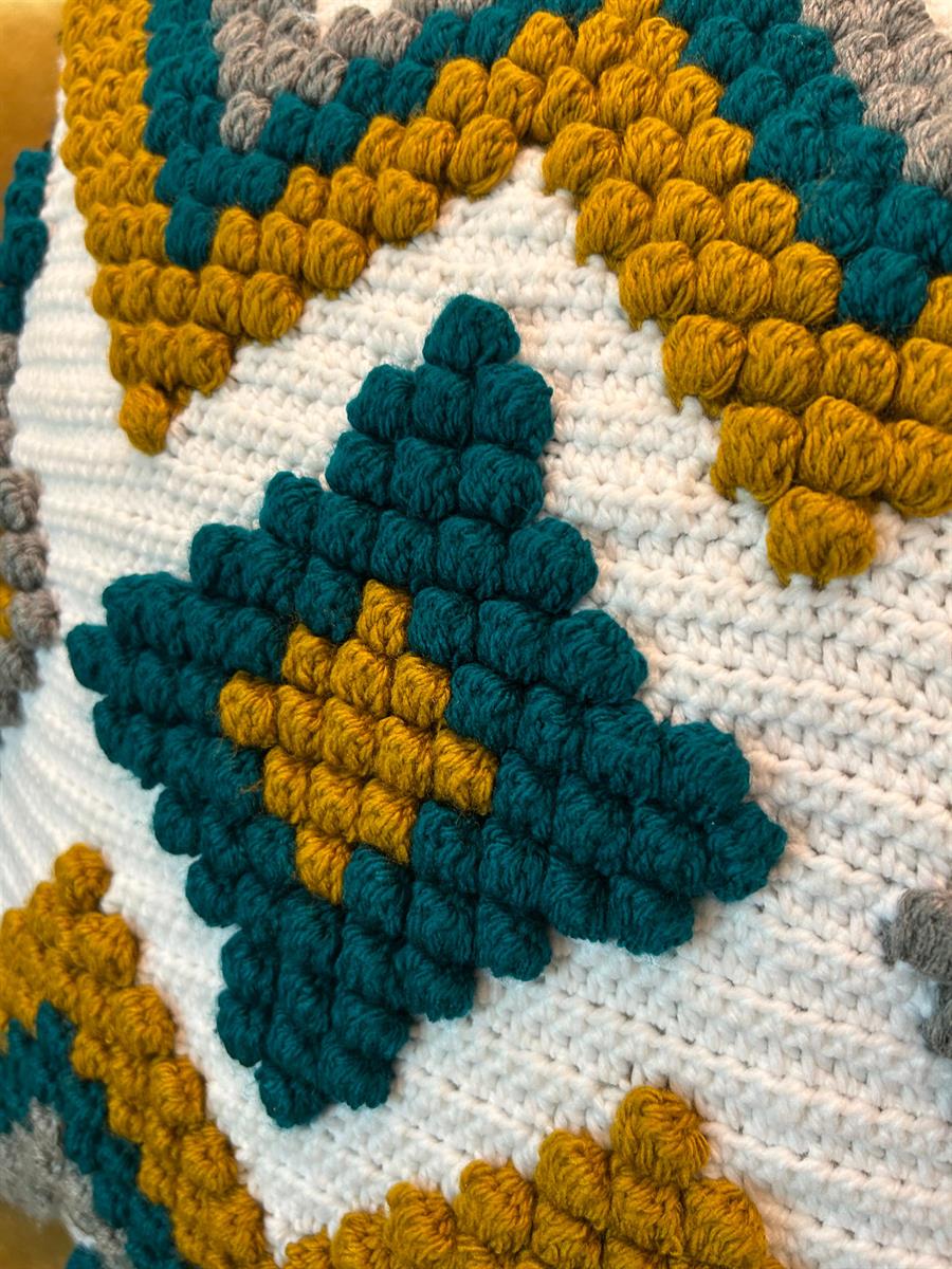 Handcrafted 3D Bobble Stitch Cushion Pillow Cover with Local Standard Yarns. The product consist of cushion cover only. Lining and Filling is not included.